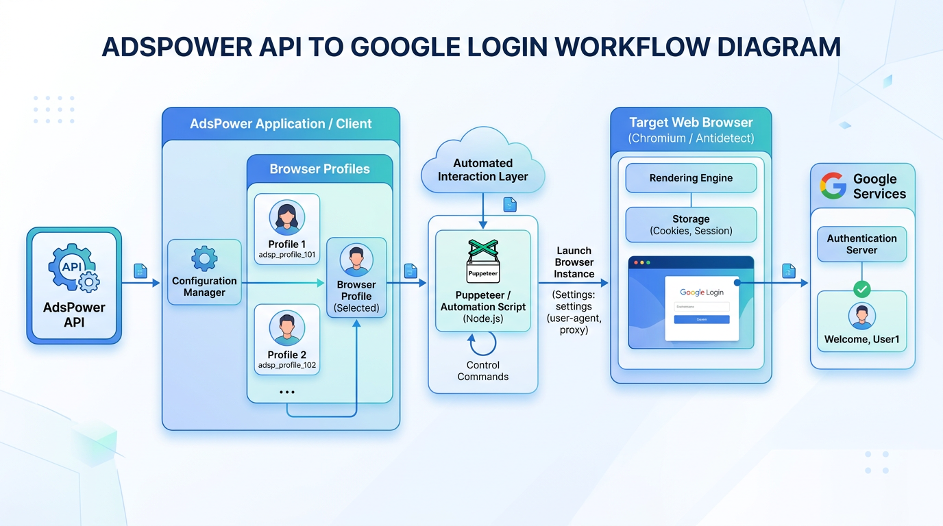 听起来很简单对吧?AdsPower 有 API,Puppeteer 可以控制浏览器,Google 登录流程也很标准。但实际操作中,我遇到了一系列意想不到的挑战。